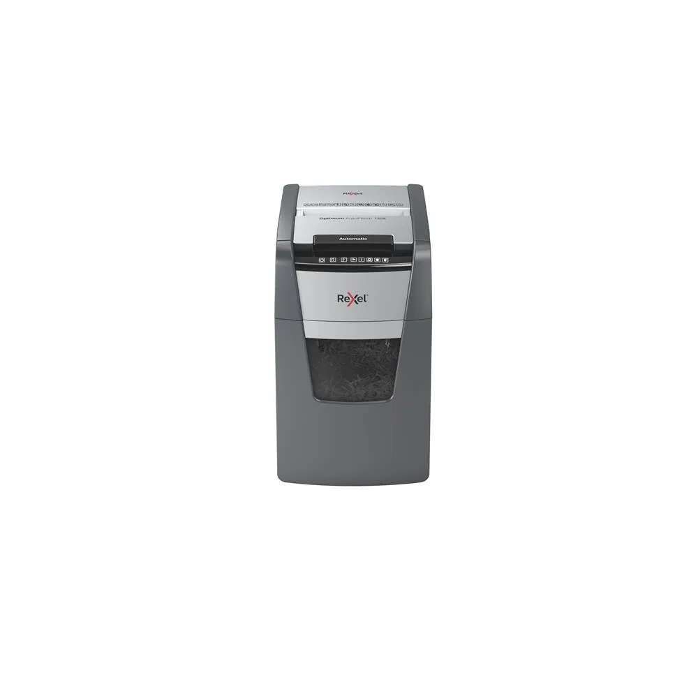 Iratmegsemmisítő konfetti 130 lap REXEL "Optimum AutoFeed+ 130X", Alcsoport: Iratmegsemmisítő, Adagolás módja: Automata, Felhasználási terület: Közepes irodai használatra, Lapkapacitás: 130 lapig, Vágás típusa: Konfetti, Biztonsági szint: DIN P-4, Papírkosár kapacitás: 44 l, Hitelkártya megsemmisítés: Igen, Tűzőkapocs megsemmisítés: Igen, Gemkapocs megsemmisítés: Igen