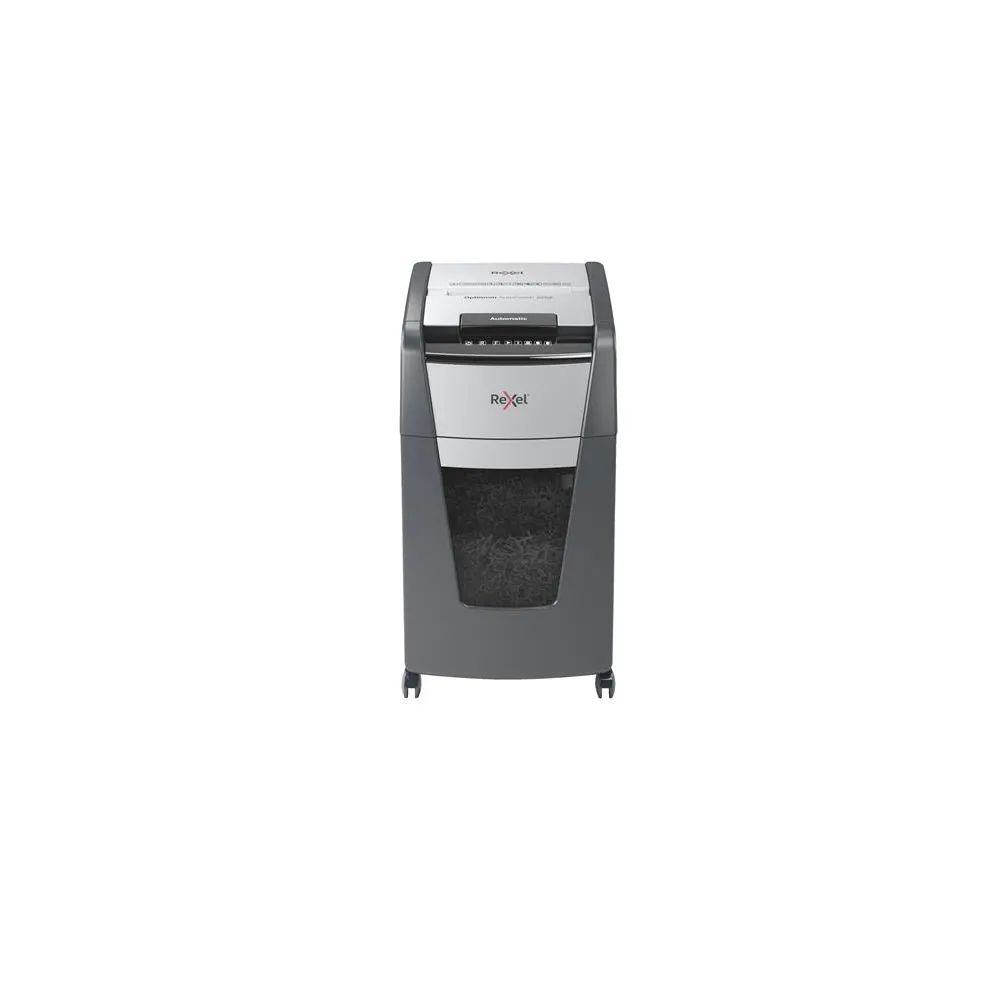 Iratmegsemmisítő konfetti 225 lap REXEL "Optimum AutoFeed+ 225X", Alcsoport: Iratmegsemmisítő, Adagolás módja: Automata, Felhasználási terület: Nagy irodába, intenzív használatra, Lapkapacitás: 225 lapig, Vágás típusa: Konfetti, Biztonsági szint: DIN P-4, Papírkosár kapacitás: 60 l, Hitelkártya megsemmisítés: Igen, Tűzőkapocs megsemmisítés: Igen, Gemkapocs megsemmisítés: Igen