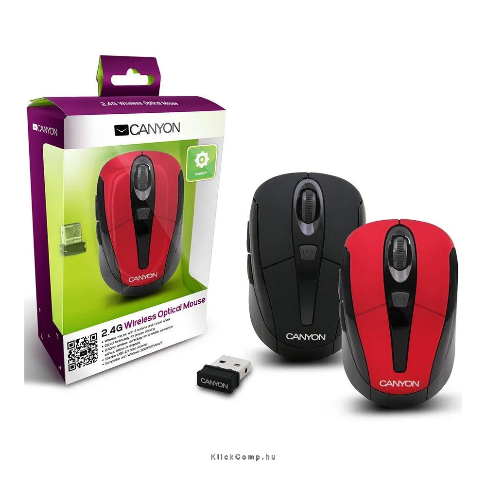 CANYON CNR-MSOW06B Fekete vezeték nélküli egér, Gombok száma: 5 + 1 DPI váltó (1000/1200/1600 dpi), 2.4GHz vezeték nélküli kapcsolat, USB vevő