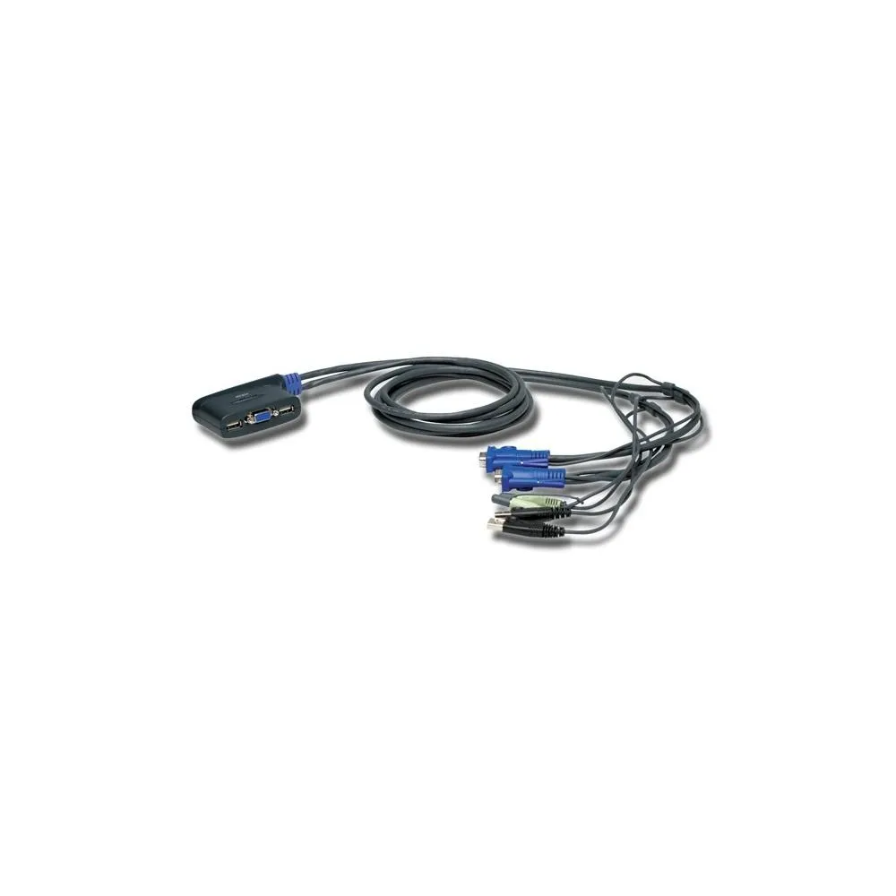 Kompakt KVM átkapcsoló, két számítógép egy konzolról történő felügyeletéhez. Beépítése és használata egyszerű, a beépített kábeleket csatlakoztatni kell a két számítógéphez, valamint a konzol egységeit (monitor, billentyűzet, egér, hangszórók) a KVM átkapcsolóhoz, és a készülék máris használható. Szoftver telepítése nem szükséges. A két gép között gyorsbillentyűvel lehet átkapcsolni és rendelkezésre áll az "auto scan" funkció, mellyel folyamatosan felügyelhető a két számítógép. USB porttal felszerelt gépekkel és perifériákkal használható. A tápellátást a számítógépektől kapja. 1920 x 1440-es felbontásig használható, DDC, DDC2, DDC2B kompatibilis. A csatlakoztatott gépek menet közben is cserélhetők. Az eszköz a gépek audió jeleit is képes átkapcsolni. Az eszköz nem feltétlenül támogatja a Wireless billentyűzet és egér kombinációt.