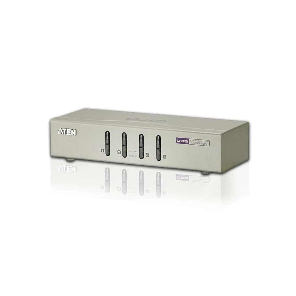ATEN KVM Switch 4PC USB VGA CS74U, Egy VGA konzolról lehet négy számítógépet kezelni, Számítógép-választó gombok az elülső panelen, Multiplatform támogatás; kompatibilis az összes operációs rendszerrel, Teljes hangerős basszus gondoskodik a 2.1 hangzásról, Kiváló video minőség; 2048 x 1536; DDC2B, Passzív (áramellátást nem igényel)