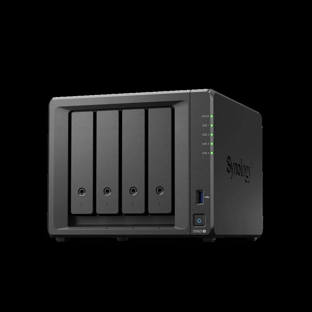 NAS 4 HDD hely Synology DS923+ (4G), Merevlemez férőhelyek száma: 4, RAID támogatás: Van, Webes elérés: Van, Backup szoftver: Van, Ethernet: Van, Wi-Fi: Nincs, USB csatlakozó: Van, Szélesség: 199 mm,