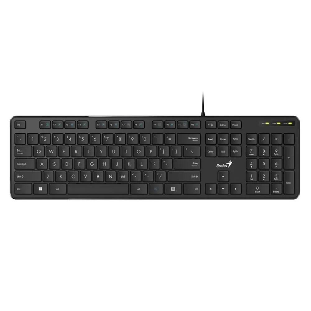 Genius SlimStar M200 billentyűzet, Csatoló felület: USB, Kapcsolódási technológia: Vezetékes, Alap szín: Fekete, Numerikus billentyűzet: Igen