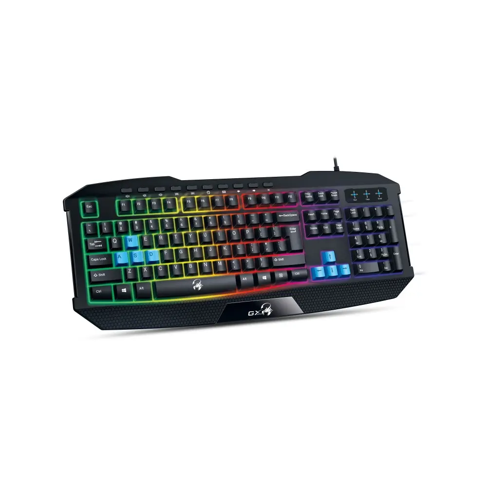 Genius Billentyűzet Scorpion K215, Kapcsolat: Vezetékes, Csatolófelület: USB, Gombok típusa: Membrán, Szín: Fekete, Multimédia: Igen, Háttérvilágítás: Igen, Csepp álló: Igen