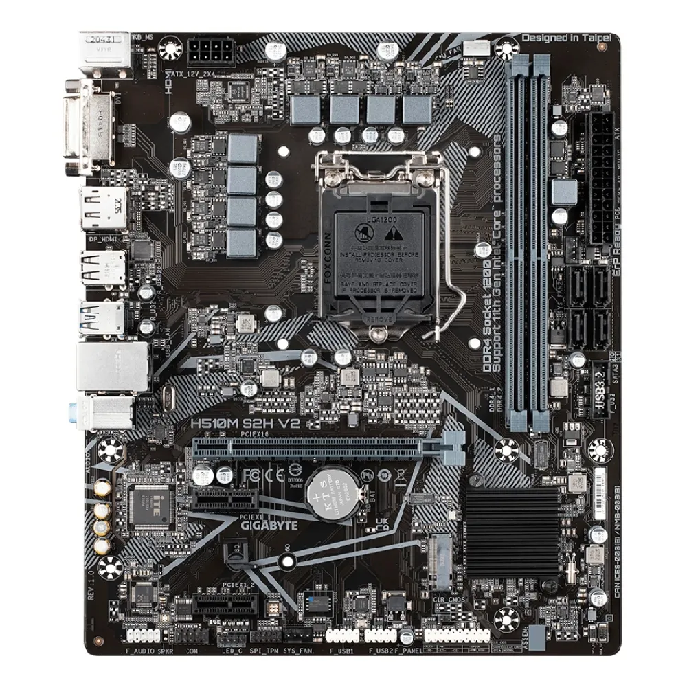 Gigabyte H510M S2H V2, Chipset: H510, Foglalat típusa: S1200, Form Factor: mATX, Max memória: 64 GB, Memória foglalatok száma: 2 db
