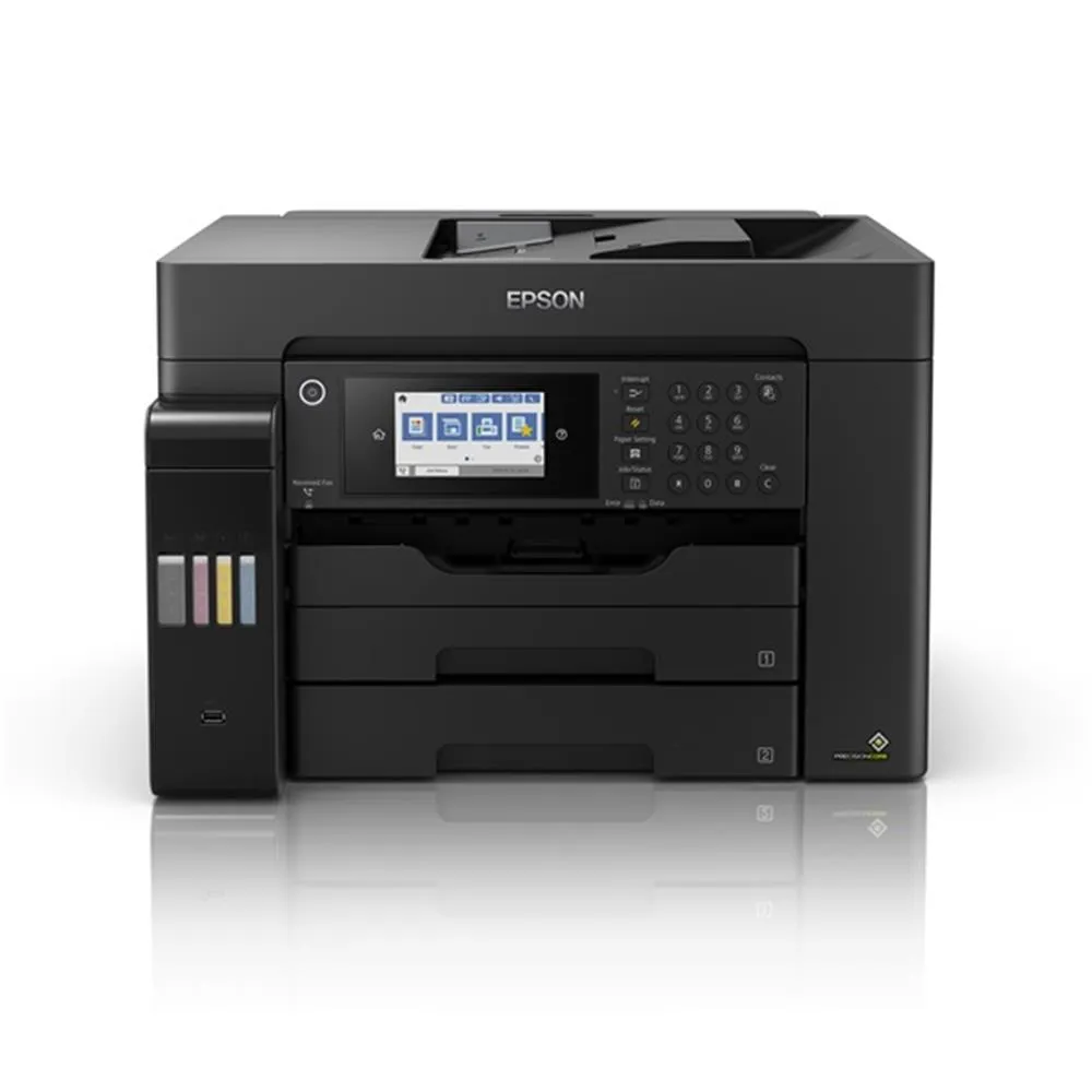 Epson L15150 színes A3+ tintasugaras nyomtató 4in1 MFP, 32 lap/perc mono, 22 lap/perc színes nyomtatási sebesség, automatikus kétoldalas nyomtatás, 4800x2400 dpi nyomtatási felbontás, síkágyas 1200x2400 dpi felbontású szkenner, színenként újratölthető nagykapacitású tintatartály, 50 lapos automatikus dokumentumadagoló (ADF), 250 lapos normál papíradagoló, 125 lapos kimeneti papírtálca, 64-255 g/m2, papírméretek: A3+, A3, A4, A5, A6, B5, C4 (Boríték), C6 (Boríték), DL (boríték), Letter, 9x13 cm, 10x15 cm, Legal. USB, Ethernet és WIFI csatlakoztatás, SD, SDXC, Memory Stick Duo foglalat. Nyomtat, másol, szkennel, faxol, „On-demand” tintasugaras (piezoelektromos) nyomtatás, 3,8 pl cseppméret, 10,9 cm-es LCD érintőképernyő, Apple AirPrint, Google Cloud Print, 12 hónap szervizgarancia vagy 150.000 oldal. Tintatartályok: C13T06C14A, fekete: 7.500 oldal, C24A-44A színes: 6.000 oldal, az indulókészlet része + 1 szett (K/C/M/Y ) extra tintatartály. 3 év garancia promó 2020.03.31-ig történő vásárlás esetén, www.epson.hu/garancia