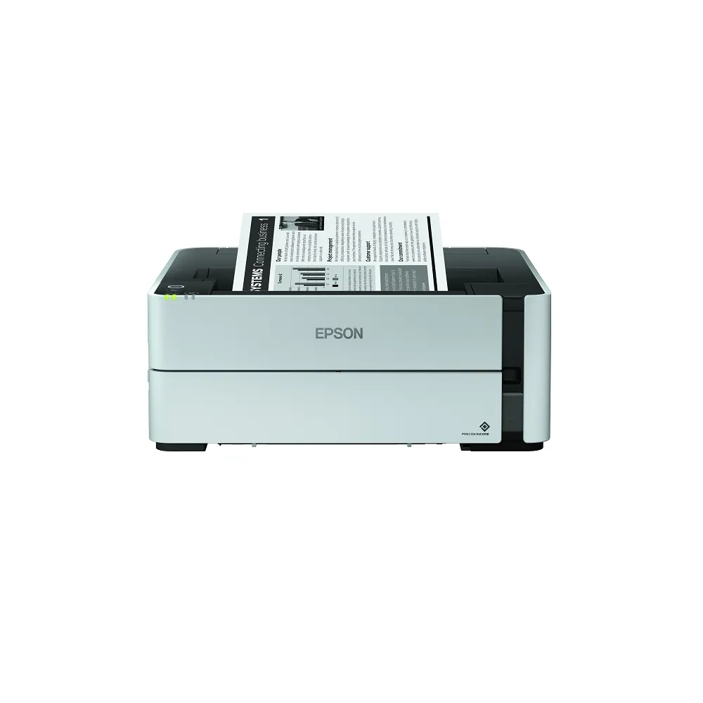 Epson EcoTank M1170 mono tintasugaras nyomtató A4, Színkezelés: Mono, Funkciók: Nyomtat, Teljesítmény: 1-3 főre ajánlott, Termékcsalád: Epson EcoTank, Termék alkategória 1: Otthoni, Termék alkategória 2: Tintasugaras tartályos, Nyomtatónyelv: GDI, Festékanyagok száma: 1, Max nyomtatási felbontás: 2400*1200, Sebesség Mono ISO: 20 oldal/perc, Maximális papírméret: A4, Duplex: Nyomtatás, Kézi vagy hátsó adagoló: Hátsó, Kézi vagy hátsó lapadagoló mérete: 1 lap, Bemeneti papírtálcák száma: 1, Bemeneti tálca 1: 250 lap, Kimeneti tálca: 100 lap, Maximális papírsúly: 256 gramm, Elsődleges csatlakozók: Hálózat, USB 2.0, Wireless csatlakozók: Wifi Direct