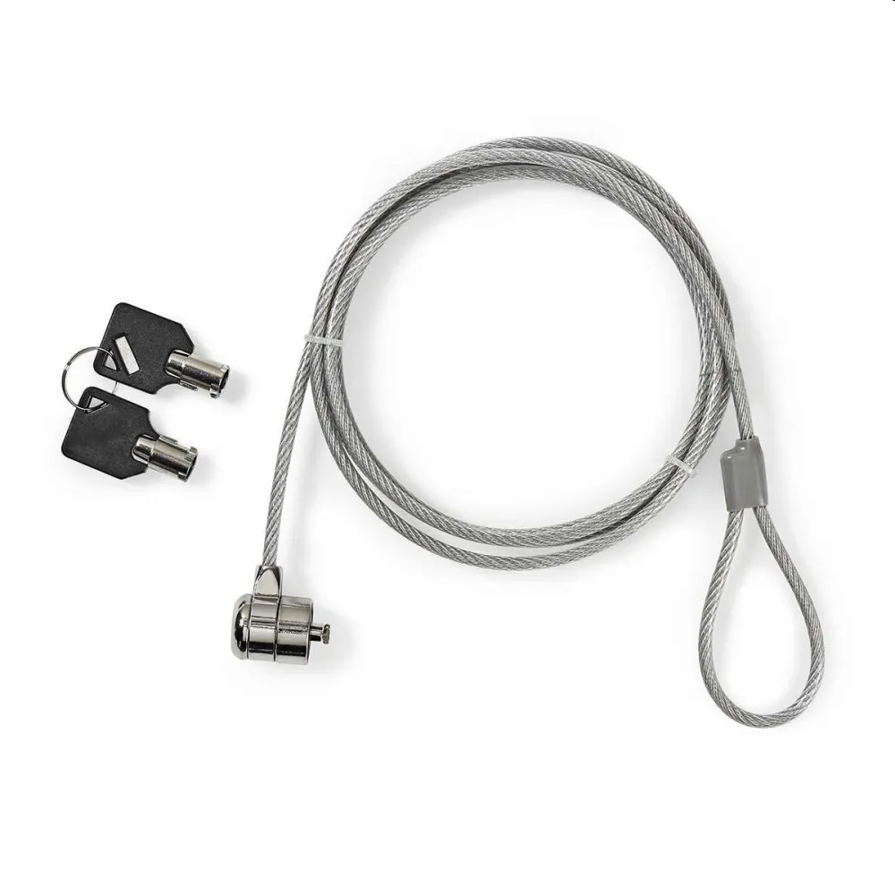 Notebook rögzítő kábel kulcsos - laptop kábelzár lakattal 1,8M Ezüst : NBLKK1002ME