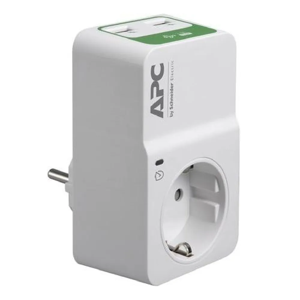 Túlfeszültség-védő 1 kimenettel APC PM1WU2-GR SURGE PROTECTOR, Névleges bemeneti feszültség: 230V, Bemeneti frekvencia: 50 Hz, Bemeneti csatlakozás típusa: Schuko CEE 7, Maximális bemeneti áramerősség: 16 A, Engedélye: CE, RoHS: Kompatibilis