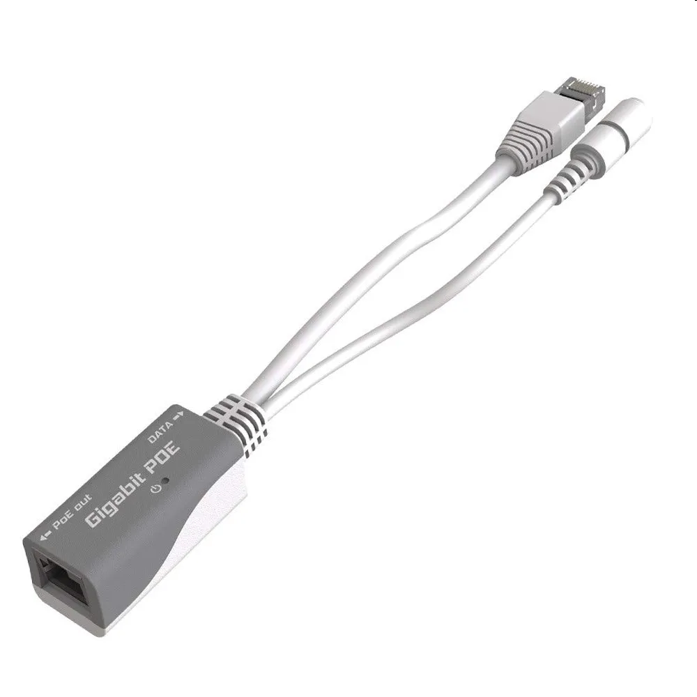 POE tápfeladó-leválasztó szett, DC tápcsatlakozók: külső átmérő 5,5 mm x belső átmérő 2,1 mm, Anyaga: AWG24 tiszta réz, Szín: Fehér