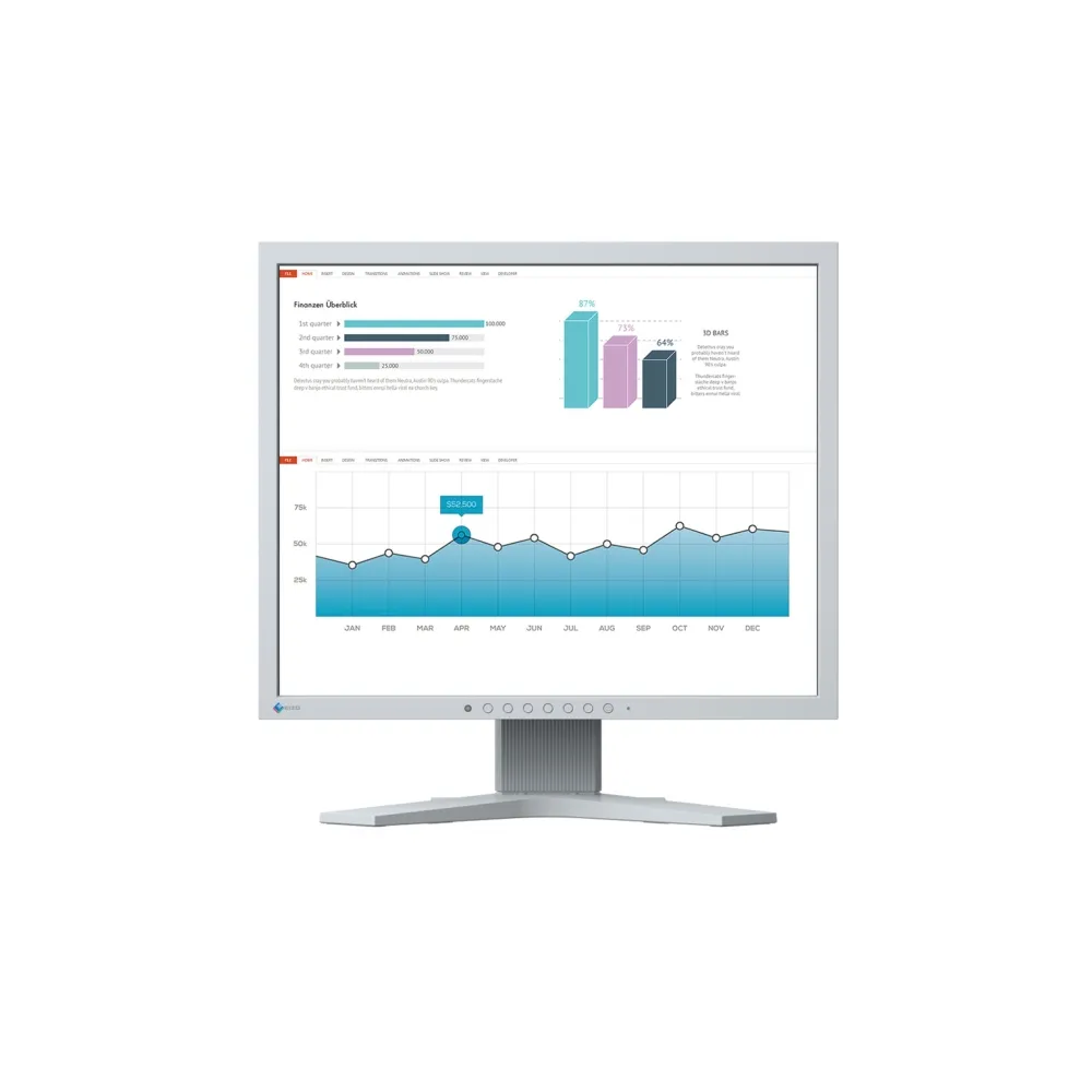 19" Monitor IPS EIZO S1934H-GY "S", Kijelző méret: 19 ", Kijelző felbontás: 1280x1024 (SXGA) 5:4, Kijlezőpanel típus: IPS , Kontrasztarány: 1000:1, Válaszidő: 14.00 ms, Képernyőfrissítés: 75 Hz, Fényerő: 250 cd/m2, Betekintési szög (H/V): 178/178 fok, Színmélység: 16.70 millió szín, Falikonzol szabvány: VESA 100x100 mm, Táp típus: Belső, Szín: Fehér, VGA: 1 db, DVI: 1 db, Fejhallgató csatlakozó: 1 db