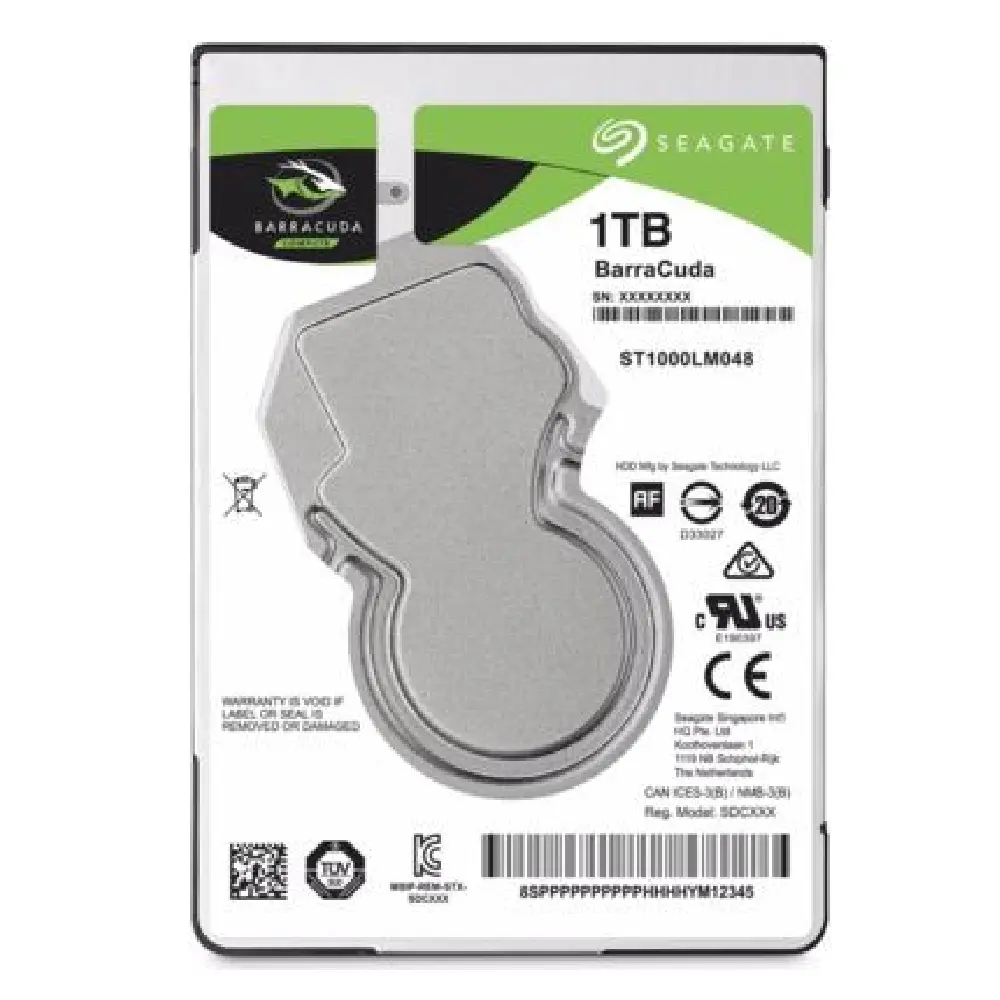Seagate BarraCuda HDD, Méret: 2,5", Csatolófelület: SATA3 (6 Gb/s), Kapacitás: 1 TB, Fordulatszám: 5400 rpm, Gyorsító tár: 128 MB