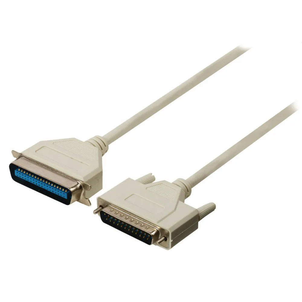 Párhuzamos Kábel 2m Elefántcsont, Kábelkialakítás: Kerek, Külső anyag: PVC, Vezeték anyaga: Réz, Fémbevonás: Nikkel, Csomagolás: Műanyag zacskó, Hossz: 2.00 m, Szín: Elefántcsont, Csatlakozó A: D-SUB 25-Pólusú Dugasz, Csatlakozó B: Centronics 36-Tűs Dugasz, Kábel típus: Parallel, Átméro: 7.0 mm
