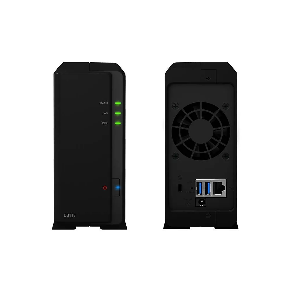 Synology DS118 NAS hálózati tároló szerver, Processzor: Realtek RTD1296 4 magos 1.4GHz, 1GB RAM, 1x Gbit Lan, 2x USB3.0, HDD helyek: 1x 3.5"