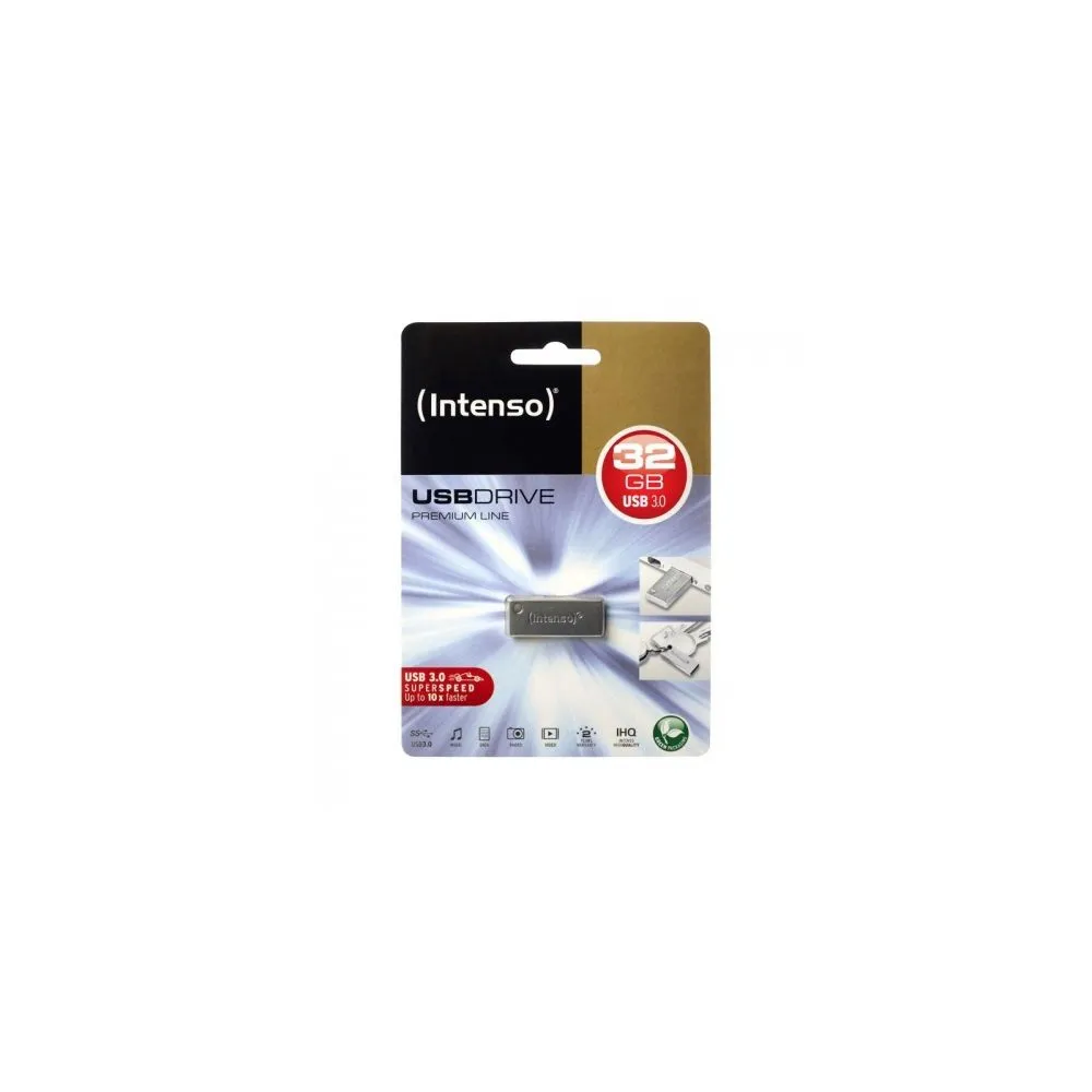 INTENSO Pen Drive 32GB - Premium Line, fémházas kivitel (USB3.0), KAPACITÁS :32 GB, CSATOLÓFELÜLET :USB3.0, SZÍN :EZÜST, ANYAG :ALUMINIUM