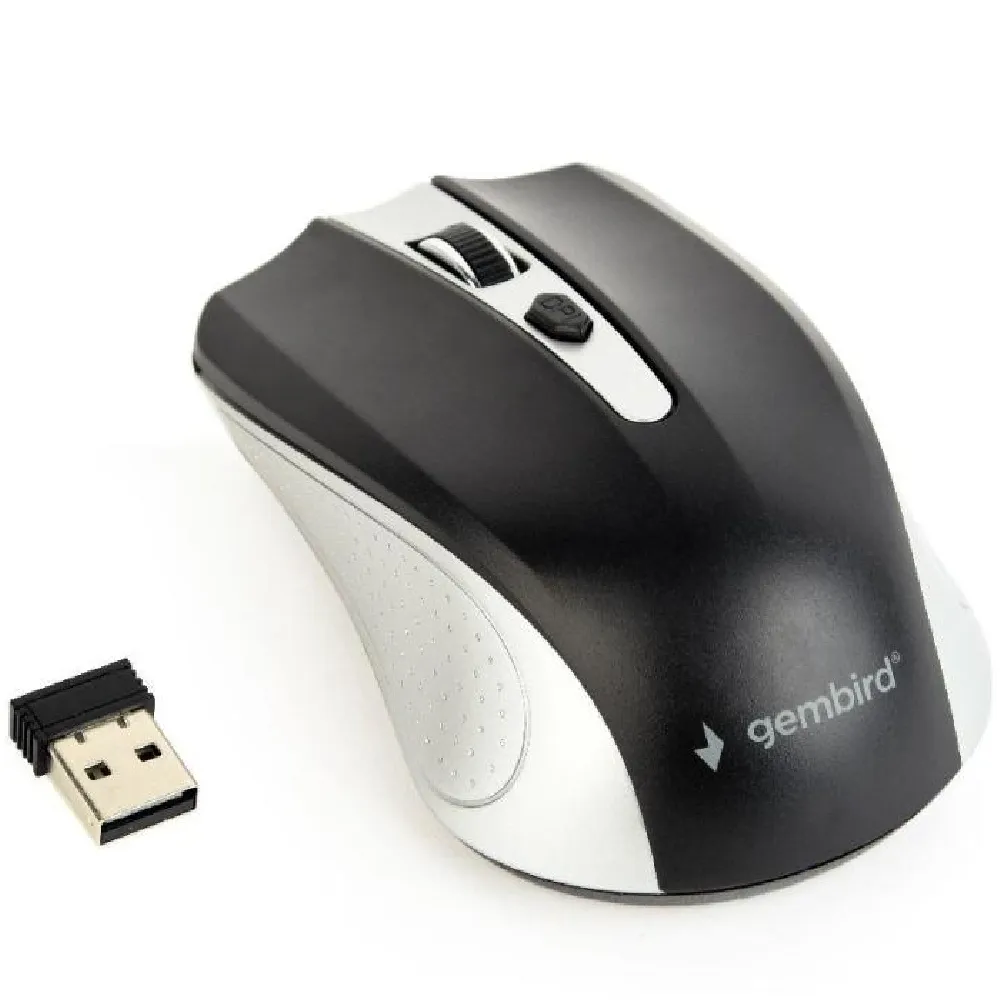 Gembird MUSW-002 optikai wless fekete-ezüst egér, Wireless: Igen, USB: Igen, Kialakítás: Kétkezes, Technológia: Optikai, Felbontás: 1600 dpi, Gomb + scroll: 3+1