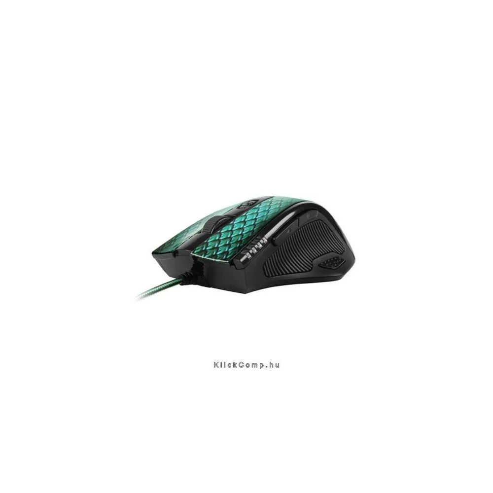 Sharkoon Egér Gamer Drakonia, Kapcsolat: Vezetékes, Csatolófelület: USB, Szín: Zöld, Szenzor: Lézer, Max. Felbontás: 5000 dpi, Méret: Nagy