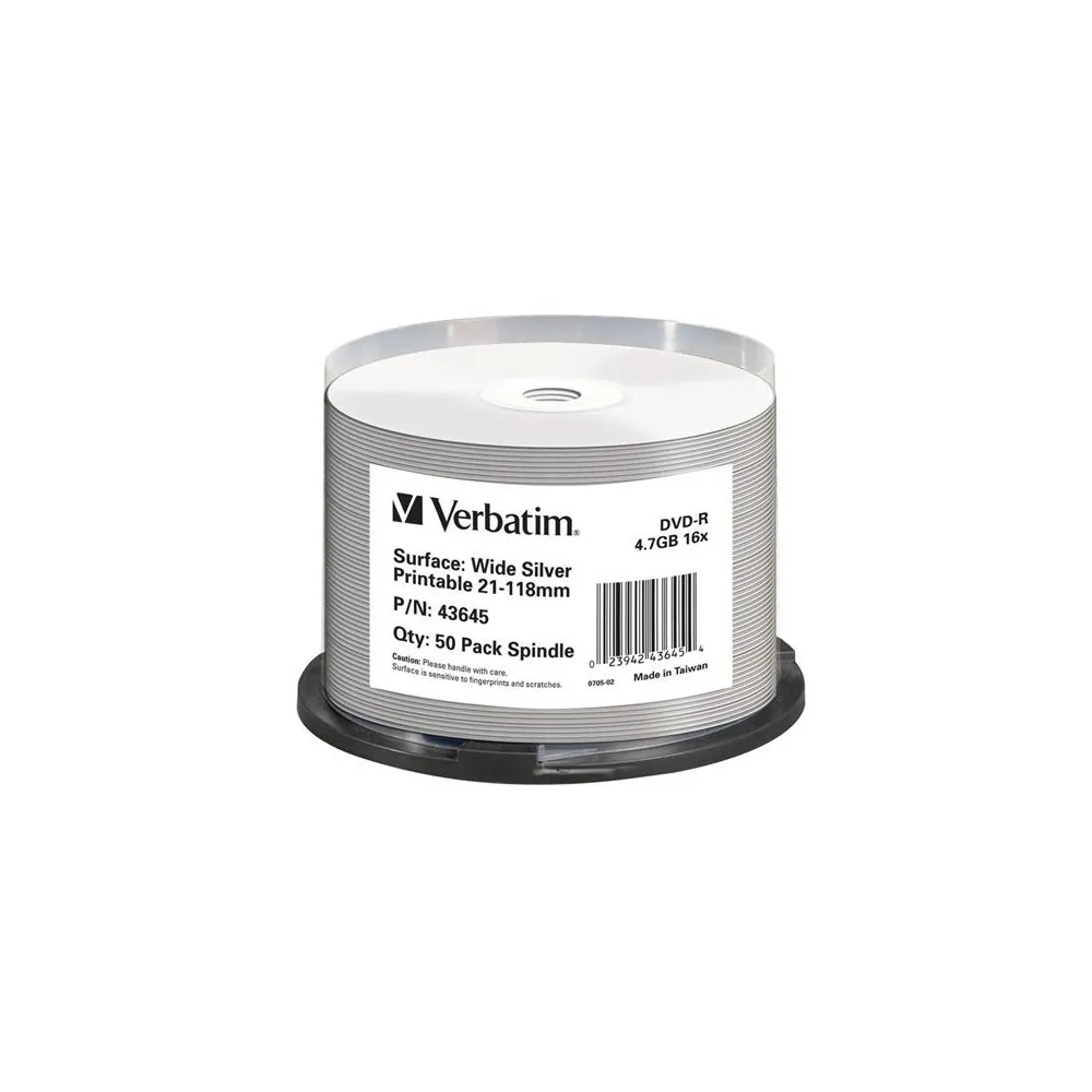 DVD-R lemez, nyomtatható ezüst felület, no-ID, 4,7GB, 16x, hengeren, VERBATIM : VERBATIM-43645 fotó